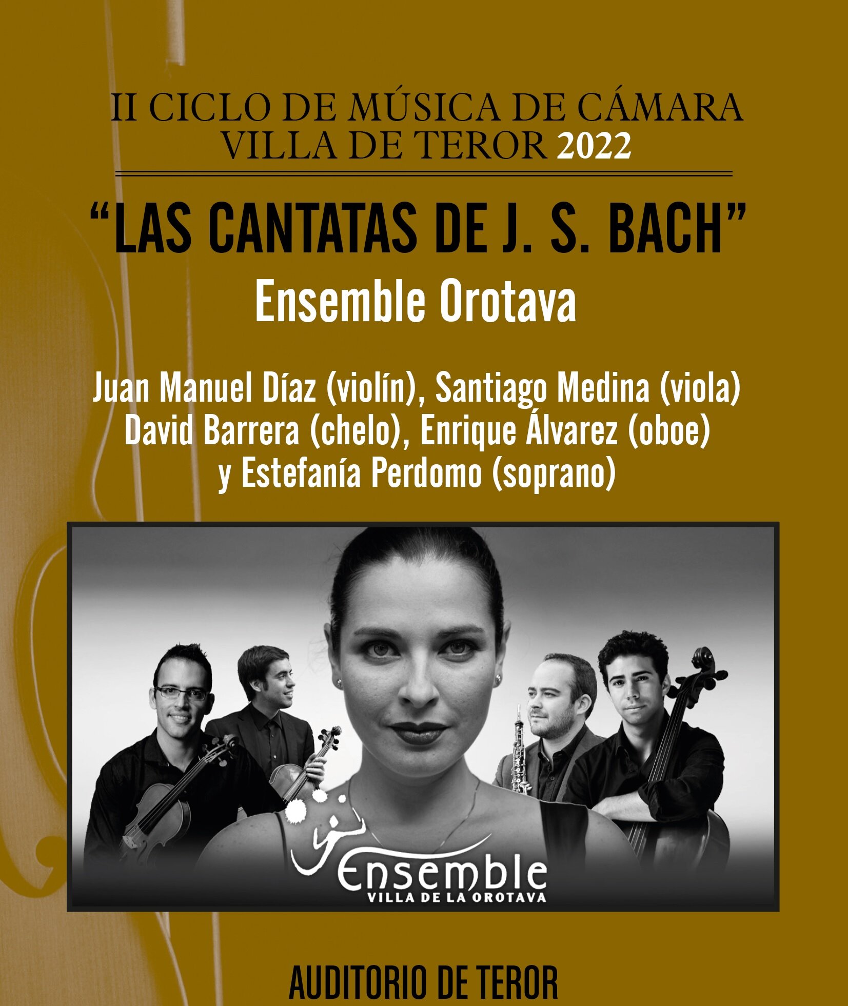 Intérpretes: Juan Manuel Díaz Rivero (Violín), Santiago Medina (Viola), David Barrera (Violonchelo), Enrique Álvarez (Oboe) y Estefanía Perdomo (Soprano).