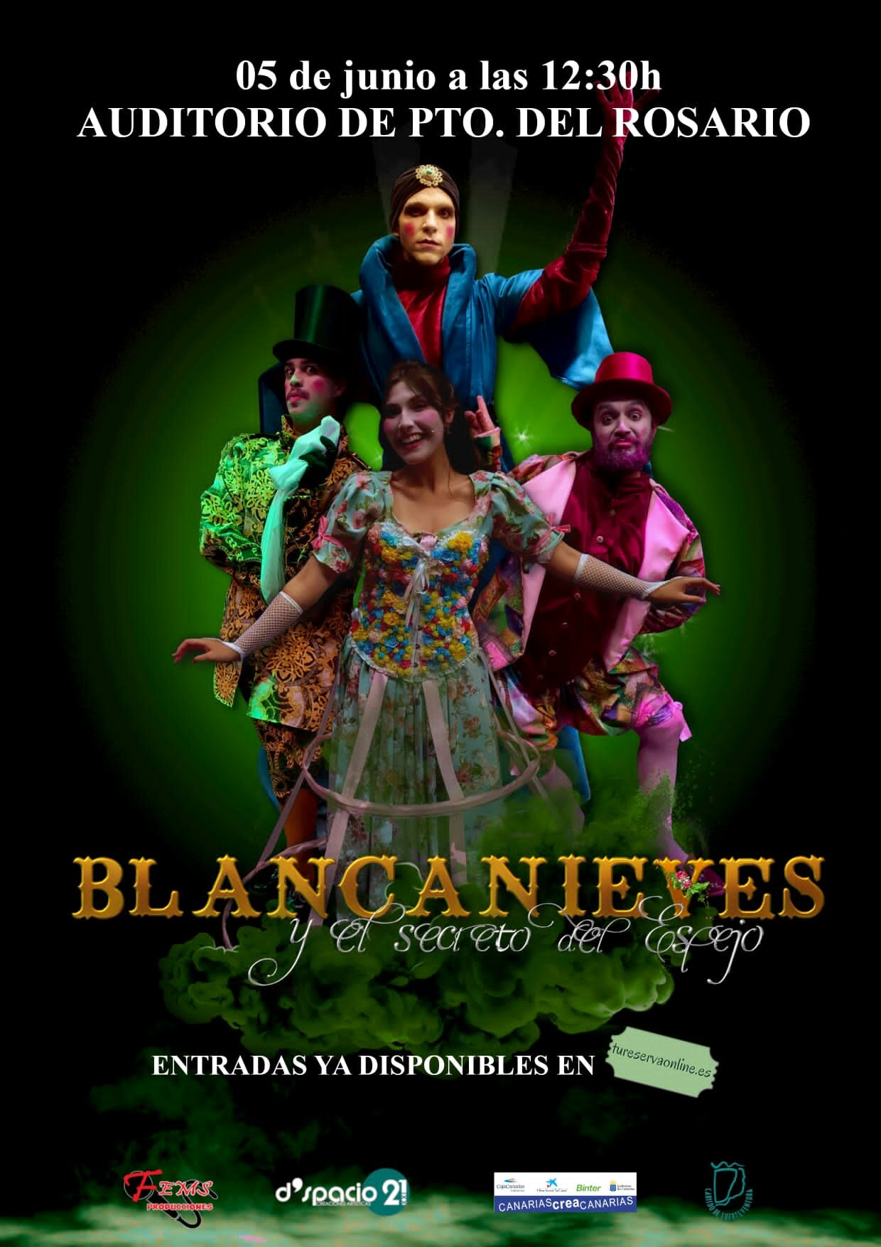 Nuestra Blancanieves, extraída directamente del clásico cuento de los hermanos Grirniti, entenderá que a veces la maldad tiene un origen que es necesario curar. Un montaje con música y letras originales, un téxJo genuino escrito para esta función, y un diseño escenográfico y de caracterización propio de un cuento de hadas.